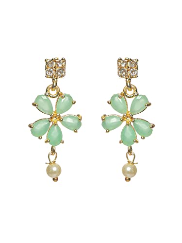 Priyaasi Mint Green Stone-Studded American Diamond Jewellery Set for Women | Floral Leaf Design | Pearl Drop | Gold-Plated | Indian Jewelry Set - For Wedding Festivals & Party