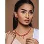 Priyaasi Red Floral Leaf Gold-ColorJewellery Set