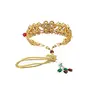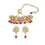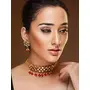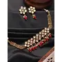This gold-Colorjewellery set can be sed with a drawstring closure. This kundan pearl choker set is a sight to behold. This set will look great with ethnic and occasion wear.