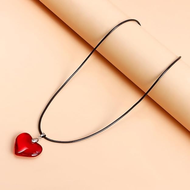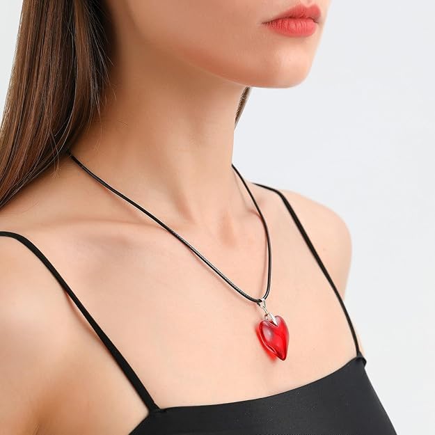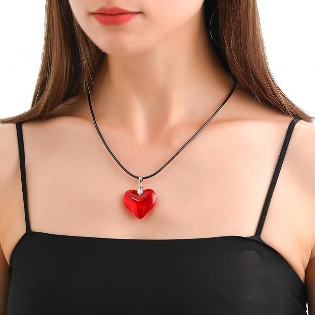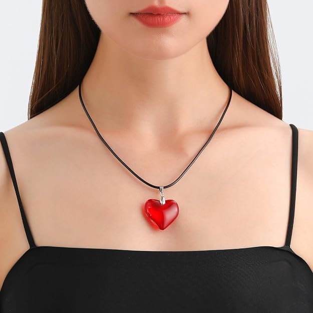 • The striking contrast between the vibrant red crystal heart and black cord creates a dramatic yet elegant look that's sure to draw admiring glances