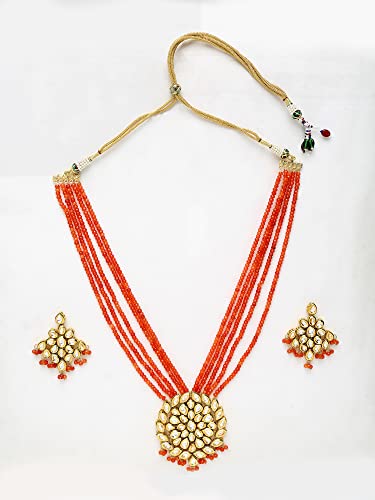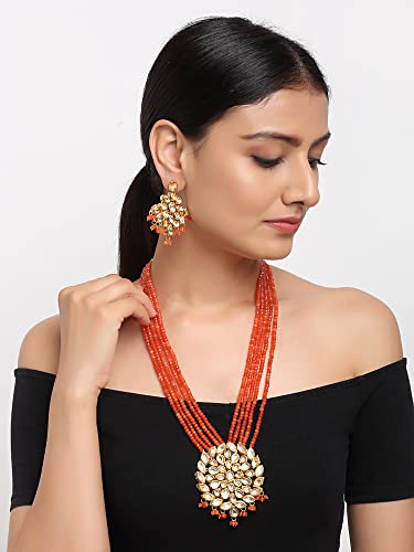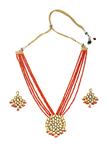 Ruby Raang Women's Mixed Metal Artificial Kundan Jewellery - Traditional Jewellery Set for Women (Orange)