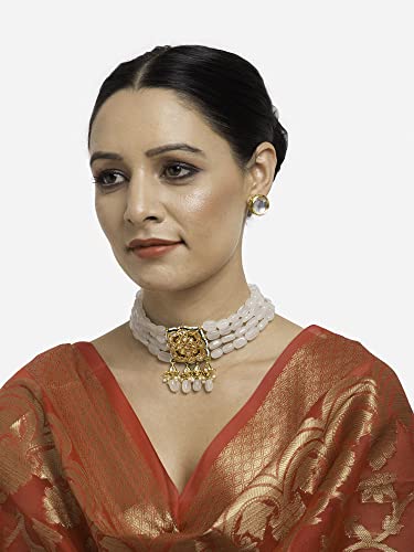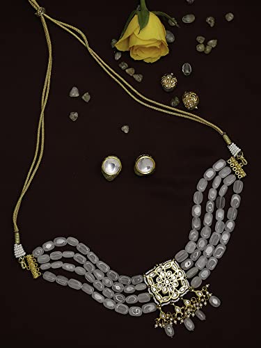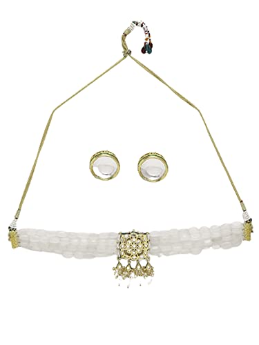 Ruby Raang Women's Mixed Metal Artificial Kundan Jewellery - Traditional Jewellery Set for Women (White)