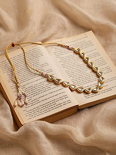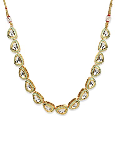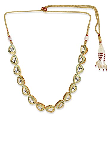 Ruby Raang Women's Mixed Metal Artificial Kundan Necklaces - Traditional Jewellery Set for Women (Gold)