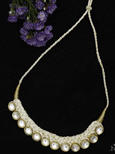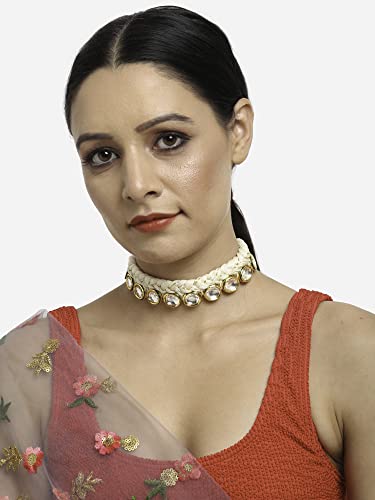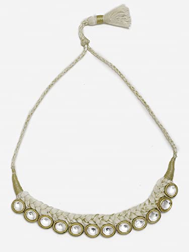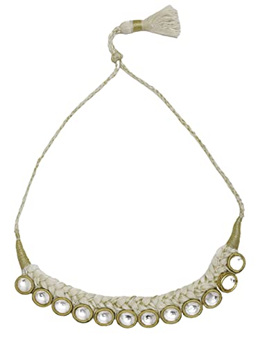 Ruby Raang Women's Mixed Metal Artificial Kundan Necklaces - Traditional Jewellery Set for Women (White)