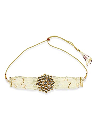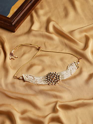 Ruby Raang Women's Mixed Metal Artificial Kundan Necklaces - Traditional Jewellery Set for Women (White)