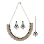 The Admirable Fashionable Choker Necklace Set is a show-stopper! The craftsmanship is top-notch, and the red-green Kundan stones shine beautifully against the skin. I receive compliments every time I wear it.
