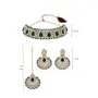 I am in love with this choker necklace set. The drop-shaped white Kundan stones and beadwork create a stunning visual appeal, making it an incredible accessory for any occasion.