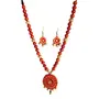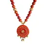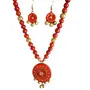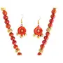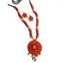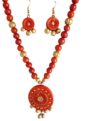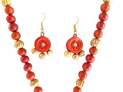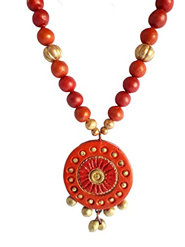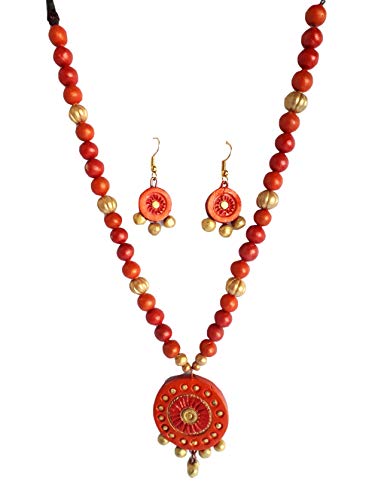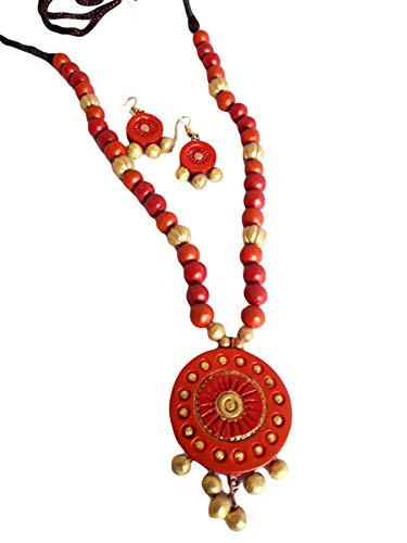 The Necklace Set Includes a neck piece and a pair of earrings which are made out of organic Terracotta (Baked Clay) and Eco friendly Natural Clay. The whole Procedure of baking shaping and painting the item is done through individual hands which requires a lot of Patience and creativity to make it unique. Today the terracotta jewellery makes exotic dressing style when worn with the traditional nomadic or tribal dresses.
