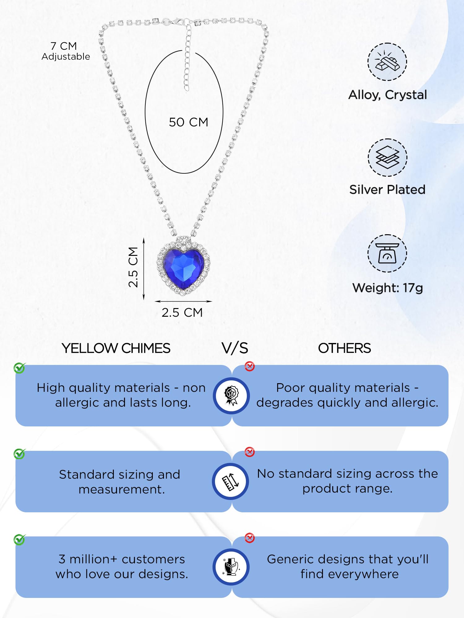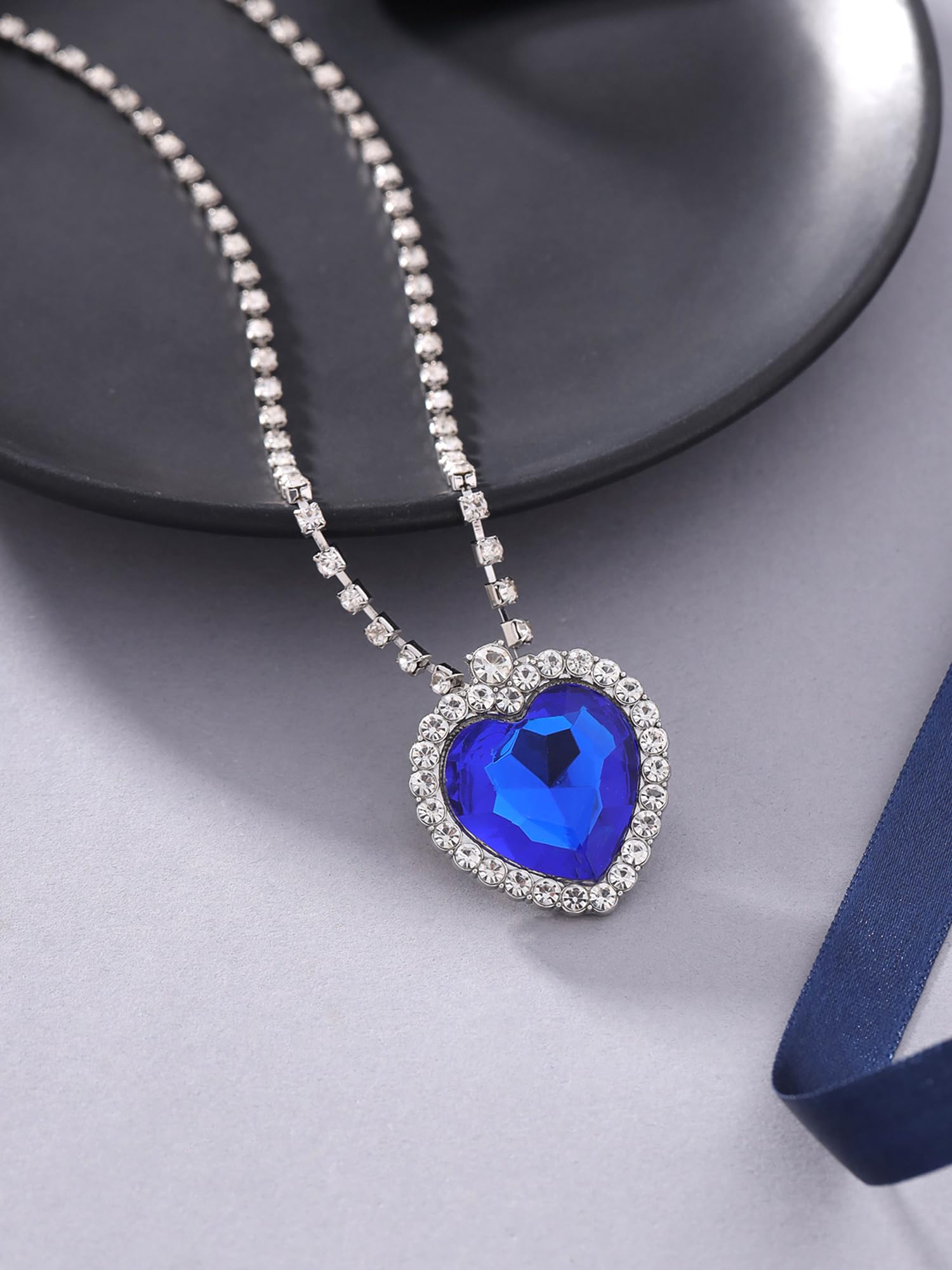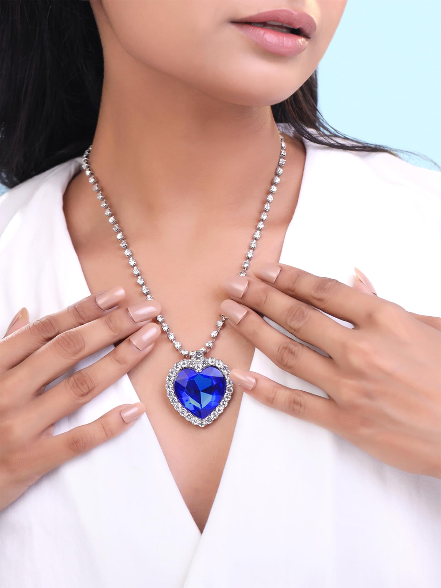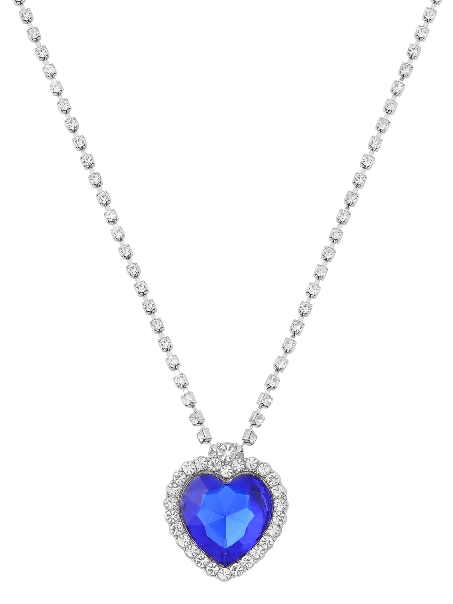 Yellow Chimes The Blue Ocean Heart Austrian Crystal Pendant with Studded Chain for Girls and Women. Perfect to Gift!