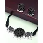Yellow Chimes Traditional Silver Oxidised Jewellery Set Silver Choker Set | Threaded Peacock Shaped Stone Choker Necklace Set | Birthday Gift For Girls and Women Anniversary Gift for Wife