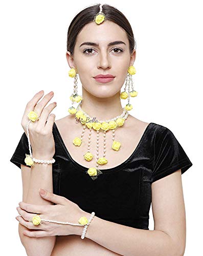YouBella Jewellery Set for women Floret Gota Patti Necklace, Earrings, Bracelet & Maang Tika For Women & Girls (Mehandi/Haldi)
