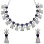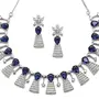 ZENEME Rhodium-ColorSilver Toned Teardrop Shaped Studded Necklace with Earrings Jewellery Set for Girls and Women