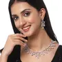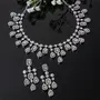 ZENEME Rhodium-Plated Silver Toned Square Shaped American Diamond Studded Necklace with Earring Jewellery Set for Girls and Women