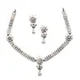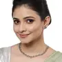This jewellery set consists of a necklace and a pair of earrings. Rhodium-Plated with Silver-Toned Floral & Leaf Design necklace has White American Diamond-studded secured by Hook closure. A pair of matching drop earrings secured with a post-and-back closure. Brand:- Zeneme Collection:- Jewellery Set Colour:- Silver and White Base Metal:- Brass Stone Type:- American Diamond Occasion:- Western Type:- Necklace and Earrings Necklace Type:- Collar Earrings Type:- Drop Earrings Necklace Closure:- Hook Earring Closure:- Post and Back Add-On:- Plating:- Rhodium-Plated What you get:- 1 Pcs of Necklace 1 Set of Earrings Care Information:- Wipe your jewellery with a soft lint-free cloth after every use. Always store your jewellery in a fabric-lined flat box to avoid accidental scratches and loosening of stone settings. Avoid contact with hairspray perfume soap and cosmetics from your jewellery. Do not soak your jewellery in water avoid using gold in swimming pools.