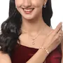 ZENEME Rose Gold-Plated White American Diamond studded Necklace Earrings Bracelet with Ring Jewellery Set for Girls and Women