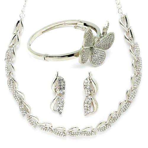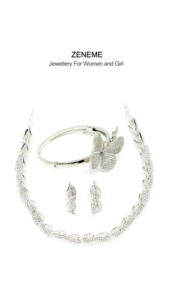 What You Get:- 1N Leaf Shaped Necklace with Matching 2N (1 Pair) Earrings & 1N Butterfly Shaped Bracelet Jewellery