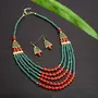 Amazing Tibetan multi strand necklace Necklace beautifully handcrafted with red black and golden beads. Golden designer beads gives an amazing look to the necklace.Falls beautifully with the neck. Easy to wear adjustable S-hook clasp for adjusting easily around the neck.Chic Boho style statement fashion necklace for women. Pair with Sarees Kurtis or other ethnic Indo-western as well as casual wear. Necklace length=22''