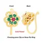 Nose Accessories can change the way your face looks instantly. Nose Rings highlight your facial features and make you look better. So it is necessary to choose a Multicolour Stone & Ruby Studded Nose and a Non piercing style that suits your Personality.Nose ring without Piercing are absolute must-haves for any Girl Or women and if you carry it right it can be quite a fashion statement. This Indian-styled press on nath nose ring non piercing for wedding is very comfortable and makes you look like million bucks.It's easy to wear too - Just put the non-studded end of the Clip on Nose ring Without Piercing Stylish on your nose and you're done. The Multicolour Non Piercing Gold Nose is made of & the design will make you look unique.Traditional Design Combo Nose rings Set nose Nath will elevate your look. An easy-to-wear design that is available in different shapes & Colours. Combo Nose Studs without piercing for weddings held closely makes this aesthetically designed nathiya appear like a real Gold or Silver Ornament.The master finishing of the Nose Nath Without Piercing For Women ensures that it always looks the best on you.Nose stud set might be the most common nose jewellery Owing to its 'easy-to-insert' feature many Non piercers often use Pressing Nose Rings as the initial nose jewellery For our customer. Amazingly beautiful Fake nose rings for without pierced nose.The all-glorious Multicolor Golden Colornose ring combo offer For Women - a design that's evergreen and never gets old Fashion .Your nose piercing is healed and you're ready to experiment with your look or maybe you accidentally lost your usual nose ring and are looking for a quick substitute. Spotting the abundance of earrings you have you wonder. You Can use this nose ring As Clip on earring o.