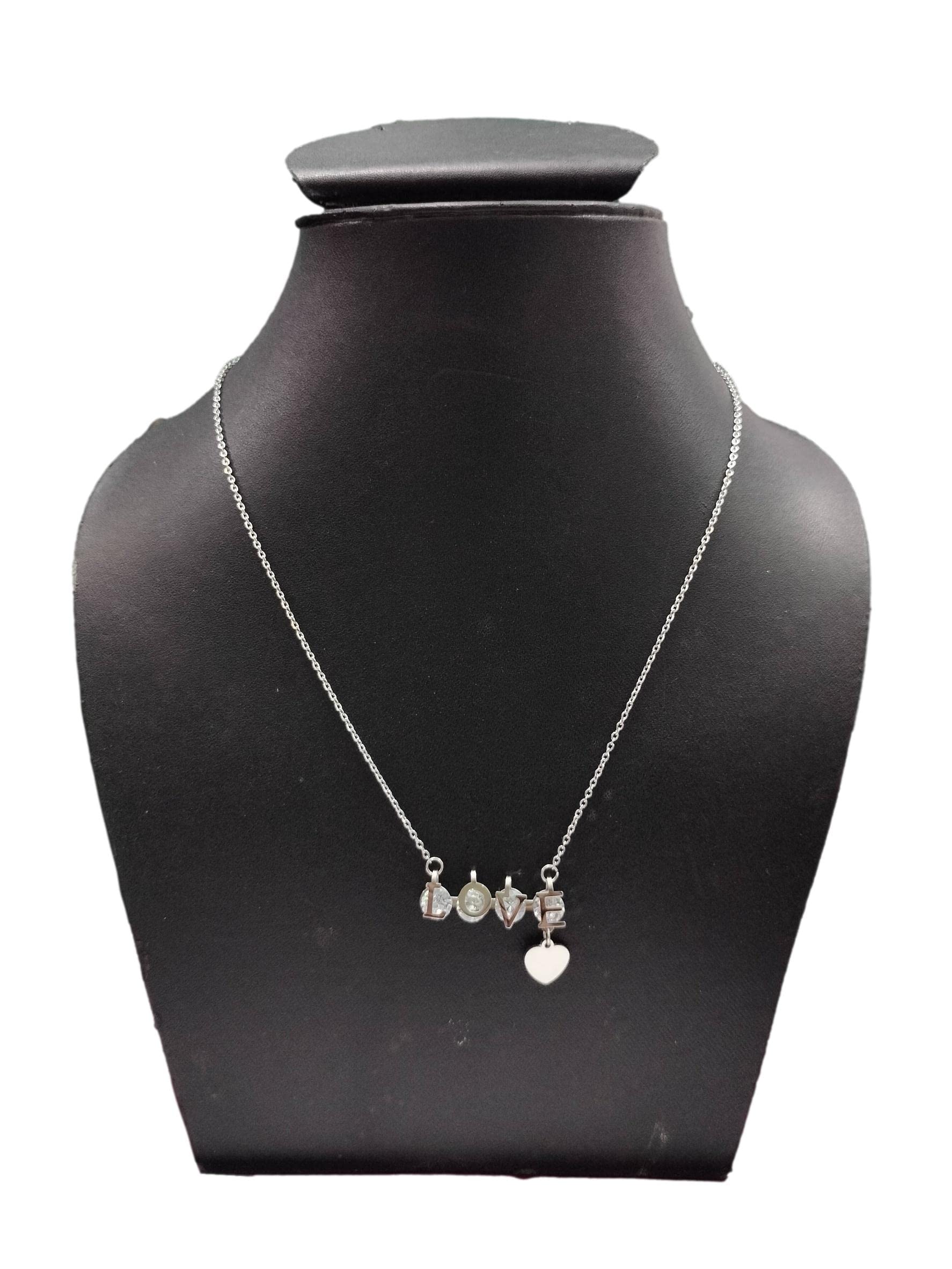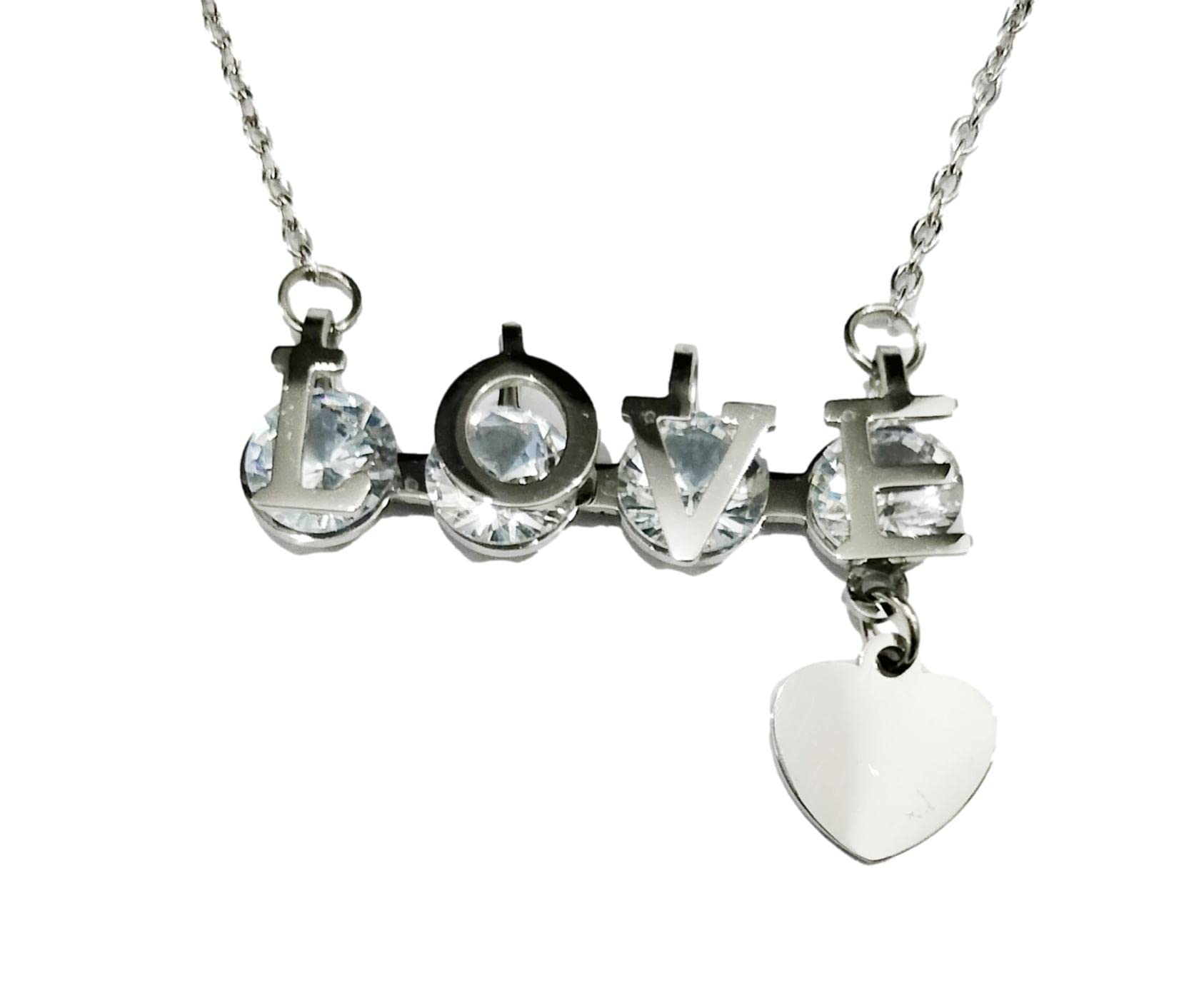 HomeFashionPendantathizay 316L stainless steel LOVE pendant with 4 cubic zirconia embedded || steel chain for Unisex Valentine Gifting || girls ladies boys men