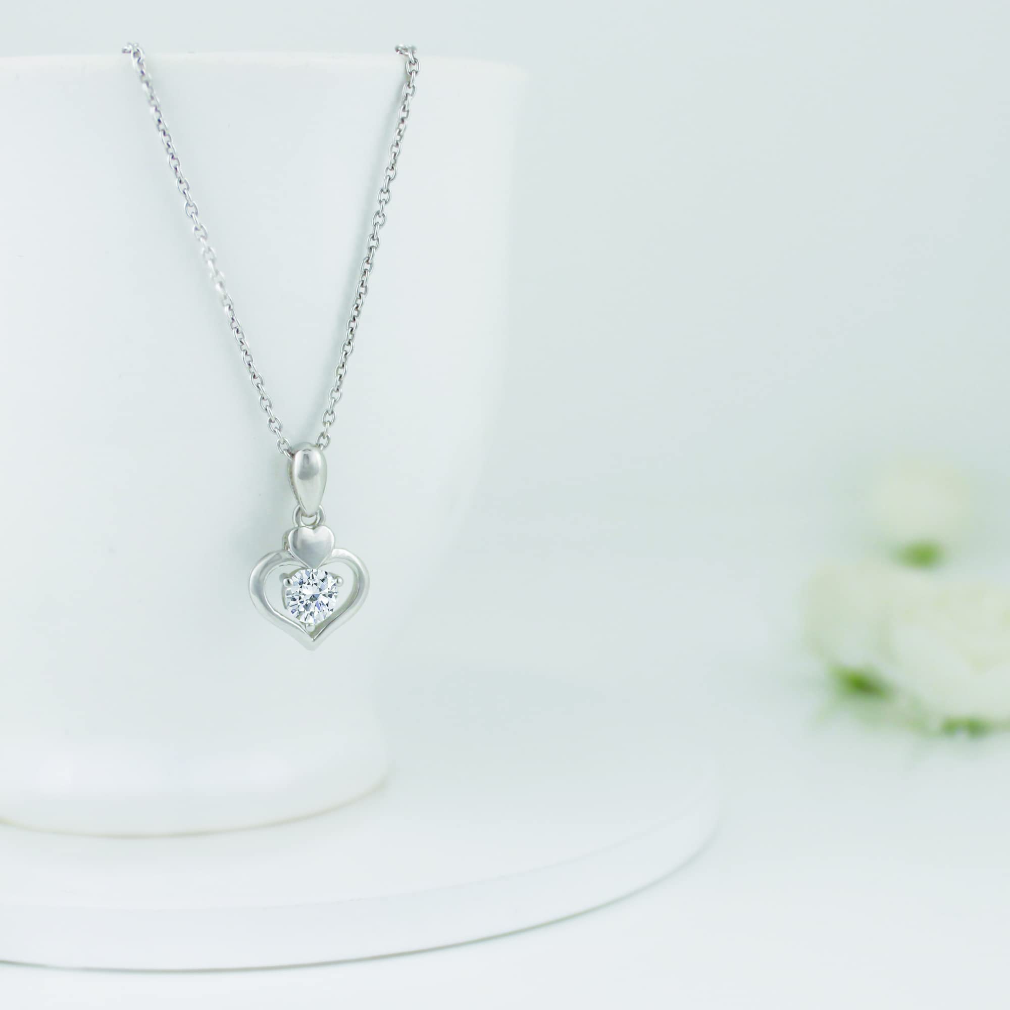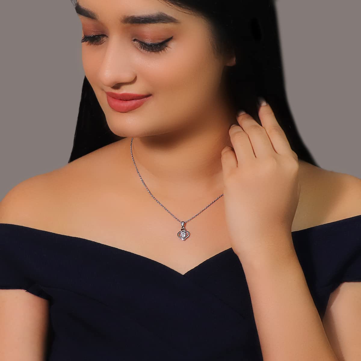 GIVA 925 Silver Stamped Zircon Dual Heart Pendant with Chain | Gifts for Girlfriend Gifts for Women and Girls |With Certificate of Authenticity and 925 Stamp | 6 Month Warranty*