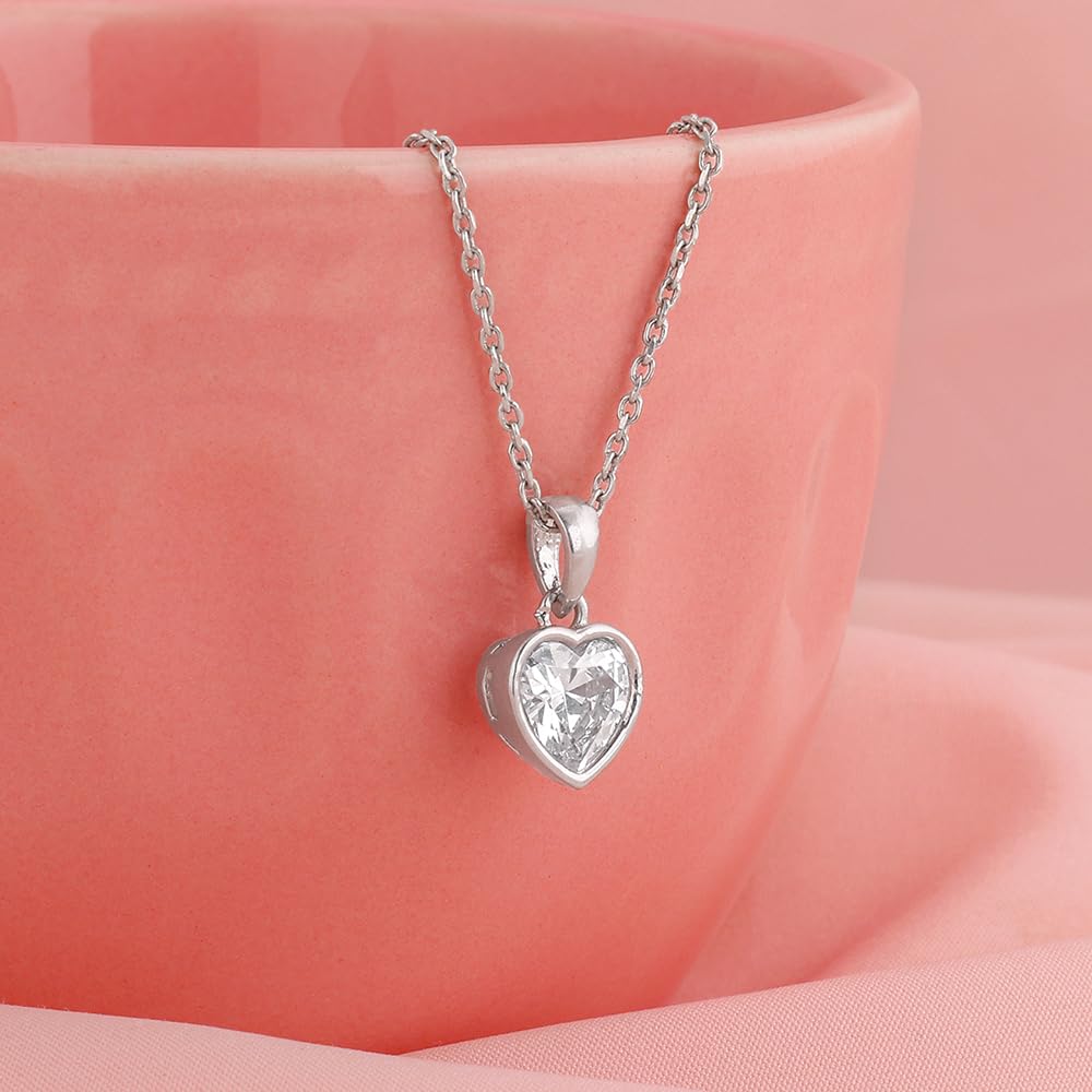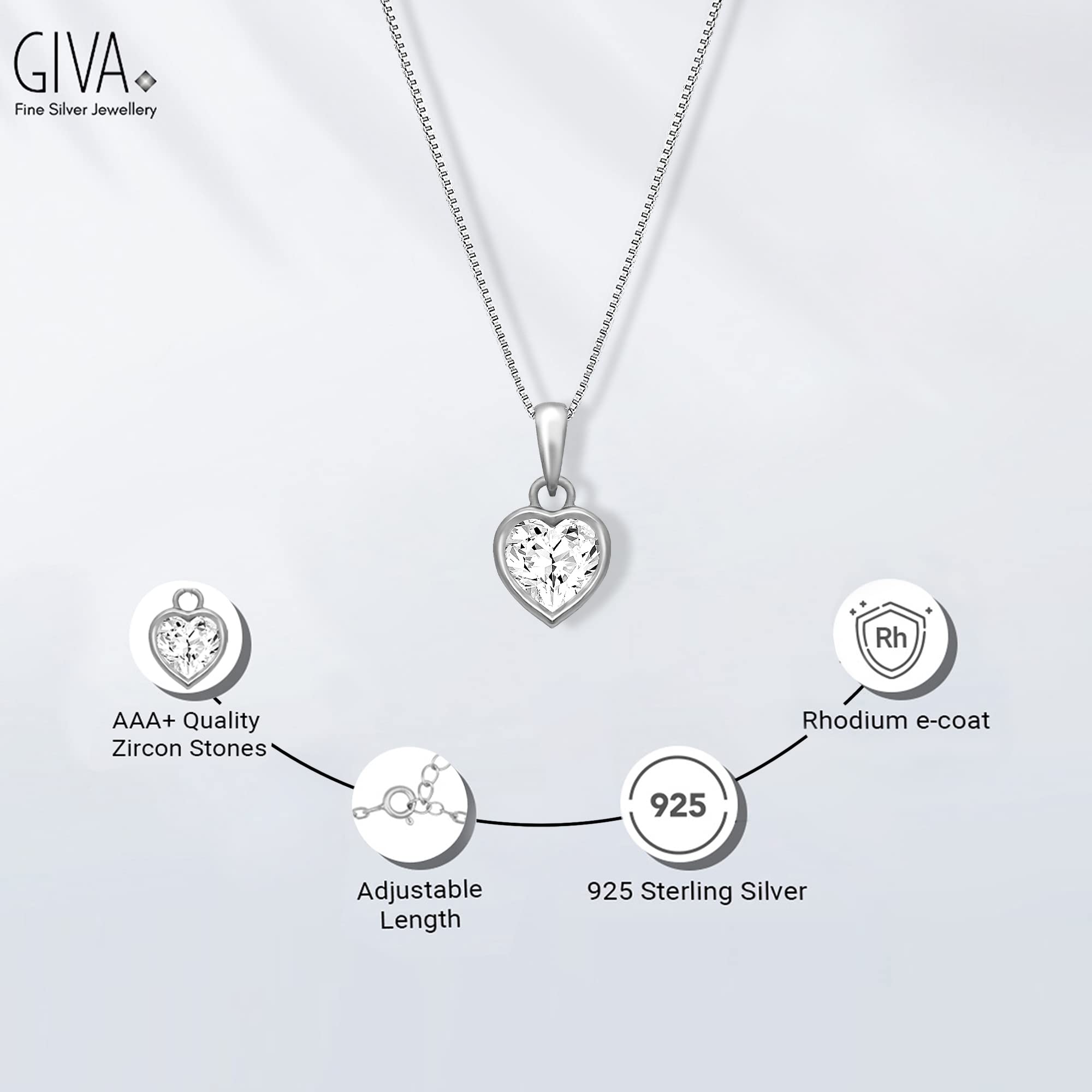 GIVA Pure 925 Sterling Silver Heart Shaped Zircon Coeur Pendant With Chain|Valentines Gifts For Girlfriend Gifts For Women And Girls|With Certificate Of Authenticity And 925 Stamp|6 Month Warranty*