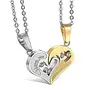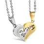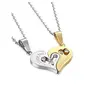 I Love You Engraved Crystal Joining Heart 2 Piece Unisex Couple Pendants Pair for Girls and Boys