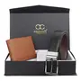 Amicraft Men's Combo Pack of Faux Leather Wallet and Belt(Tan and BlackFree Size)