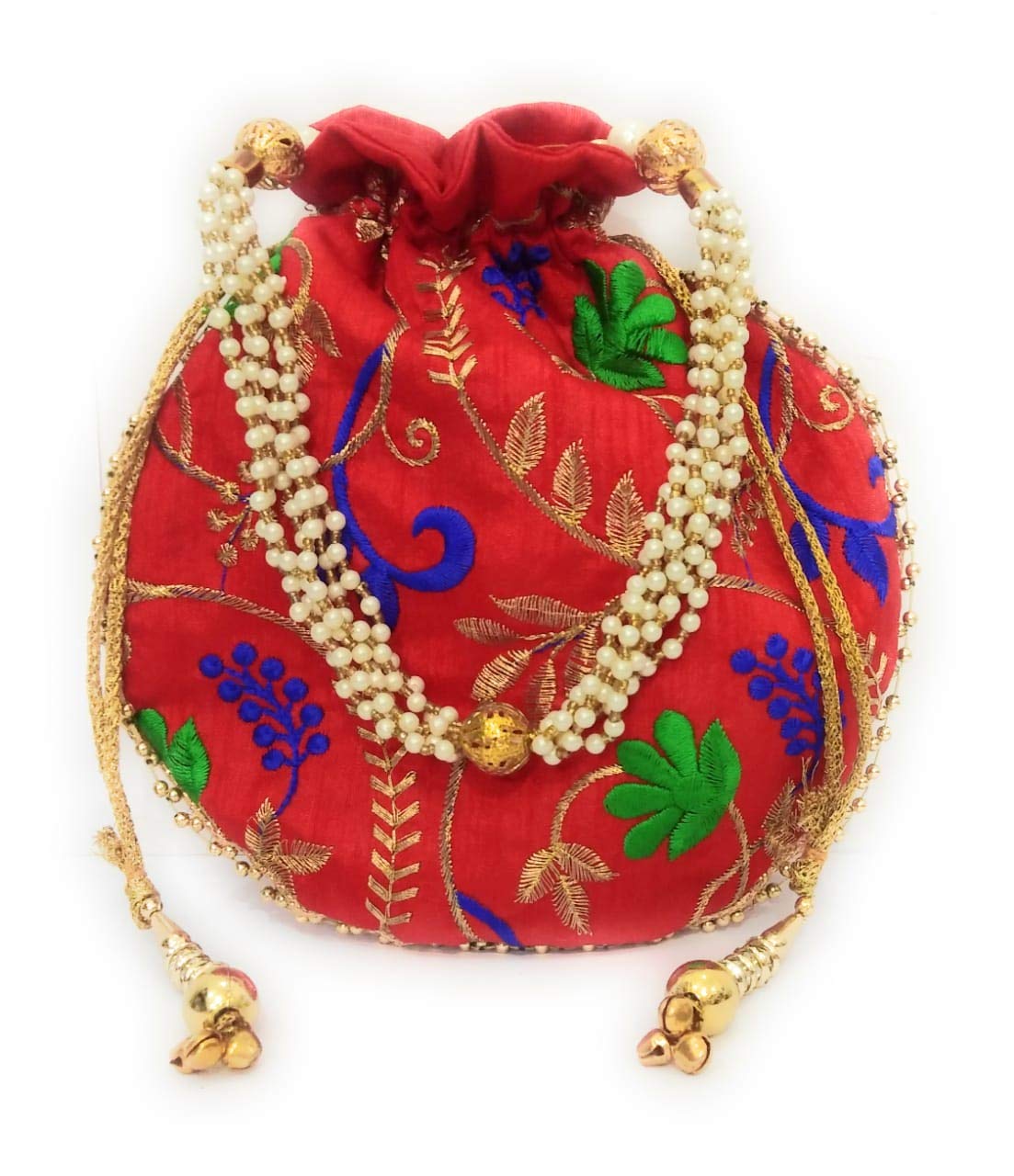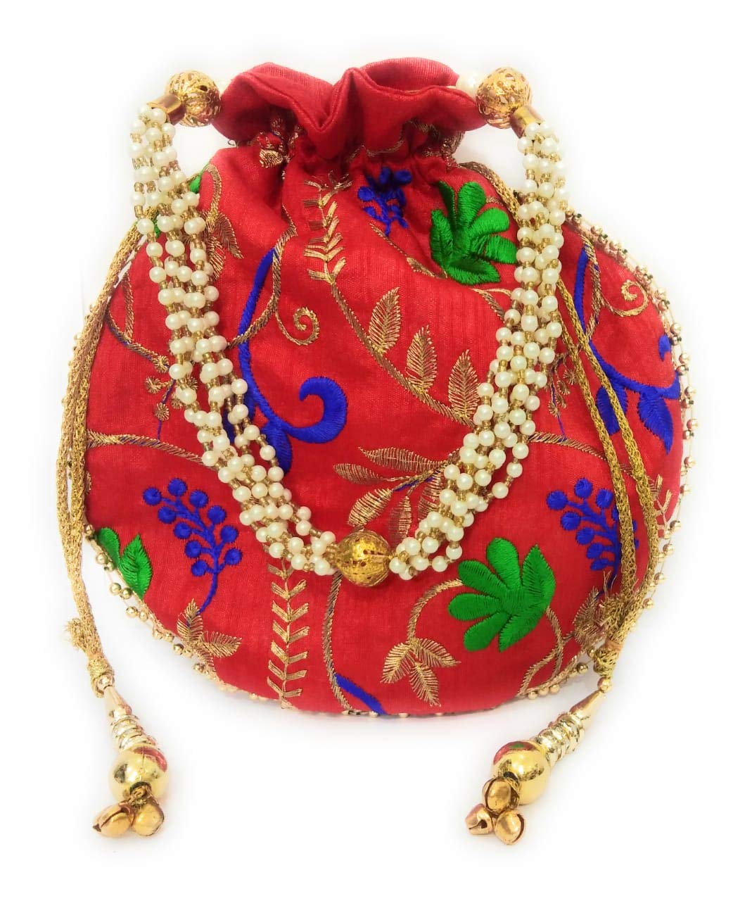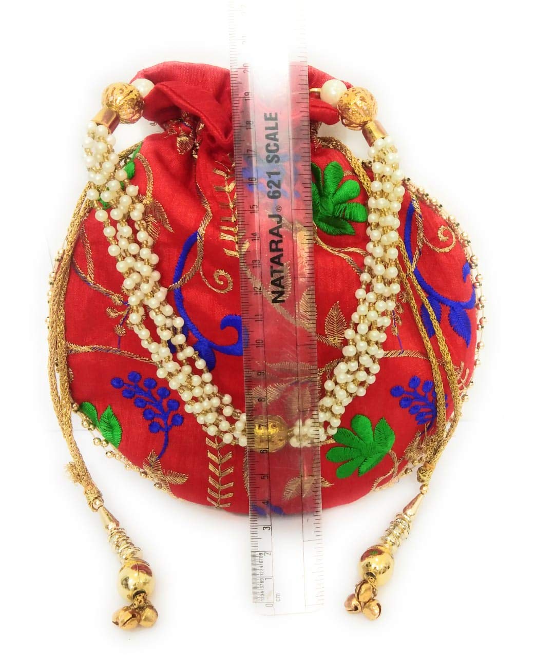 athizay Potli bag Green | Pink | Blue | black | Peach handbags for Women Hand carry pouches for Return gifting ethnic potli bags Embroidered
