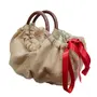 athizay Potli bags wooden handle tassel hanging Solid | Plain | Printed Fabric | Cotton | Polycotton | Jute | hand carry wristlets pouch bags for women (Golden Jute Satin Red)