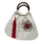 athizay Potli bags wooden handle tassel hanging Solid | Plain | Printed Fabric | Cotton | Polycotton | Jute | hand carry wristlets pouch bags for women (Off white Red)