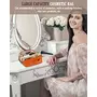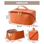 HomeFashionBagsCosmetic Bag for Women, Litchi PU Leather Makeup Pouch for Women, Large Capacity Cosmetic Travel Bag, Portable Makeup Kit Storage Bag with Handle and Divider, Orange, Travel Accessories
