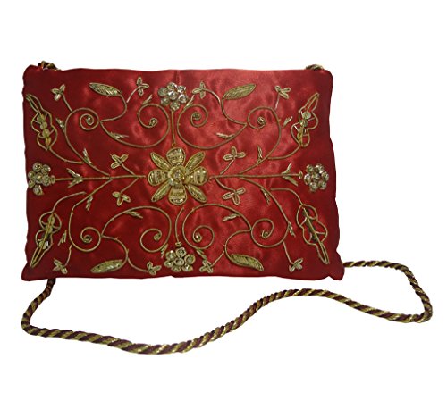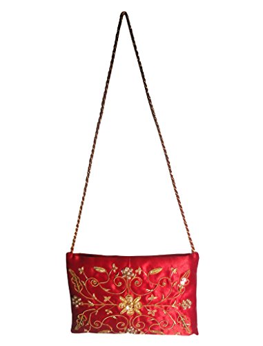 Handcrafted Red Sling Bag with Golden Zardosi work