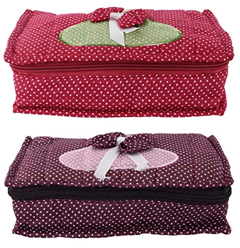 Kuber Industries Cotton Multipurpose 7 Pocket Dot Printed Jewellery Storage Bag Pouch/Travel Kit Organizer (Pink & Purple)-Pack of 2-KUBMART15445
