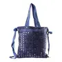 This ethnic and trendy spacious navy blue Sling bag is a master piece from Rajasthan. It is a strong and easy to carry sling cum shoulder bag especially hand crafted by our traditional craftsman. The trendy embroidered work in matching colour is remarkable handwork enhanced with round mirrors at the front.