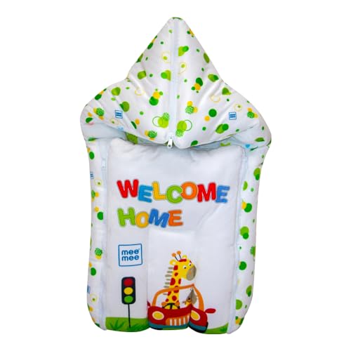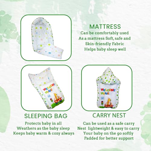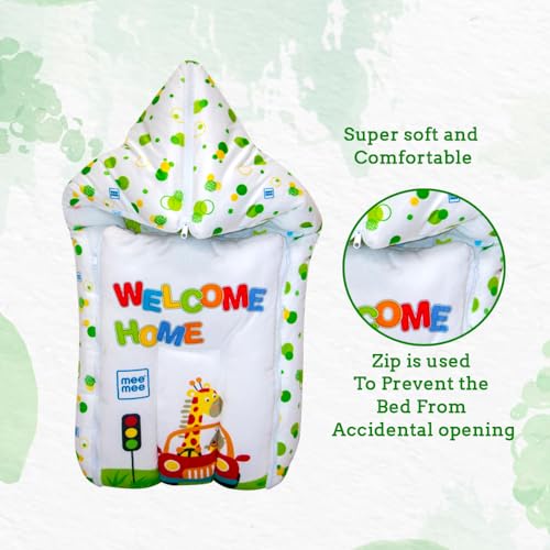 Mee Mee 3 in 1 Baby Bed, Sleeping Bag & Carry Nest, Animal Print, Shearing Finish & Cotton Soft from Inside, Machine Washable & Portable Bassinet, 0M+, Green