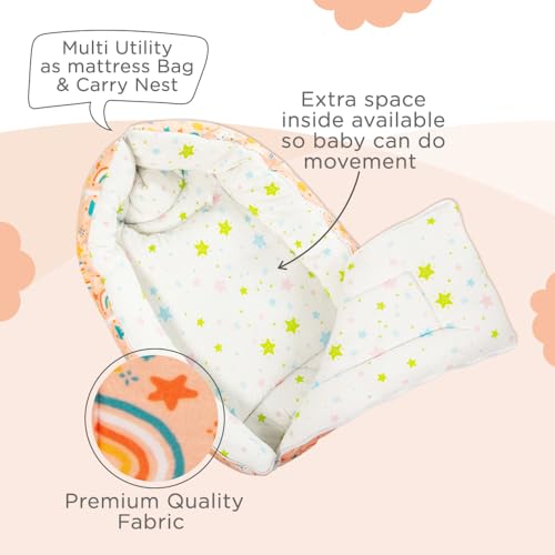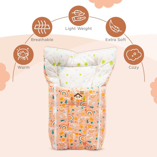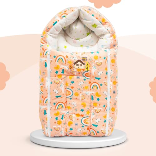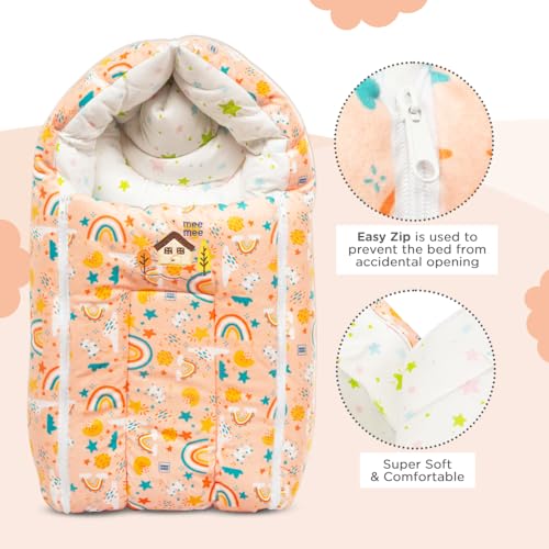Mee Mee 3 in 1 Baby Bed, Sleeping Bag & Carry Nest, House Print, Shearing Finish & Cotton Soft from Inside, Machine Washable & Portable Bassinet, 0M+, Pink