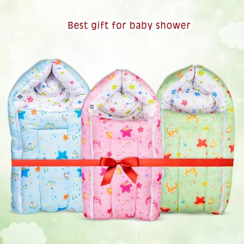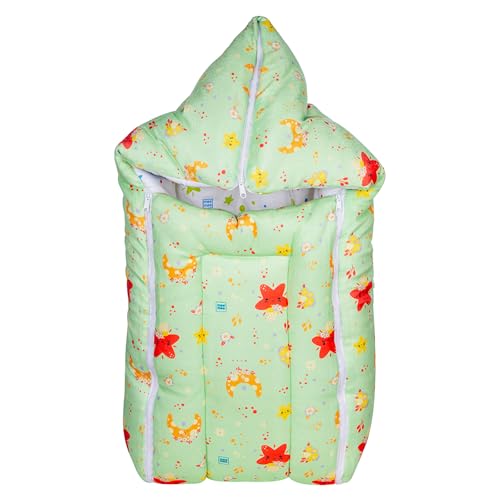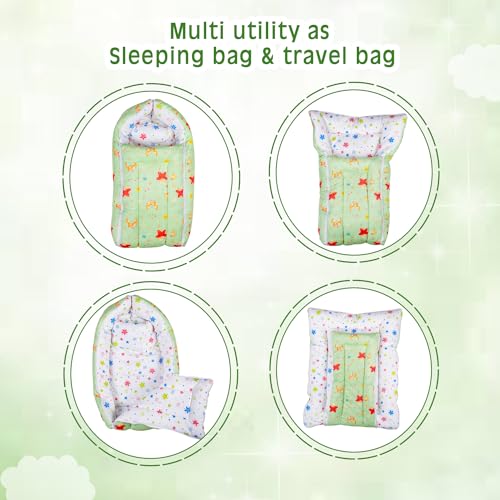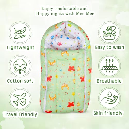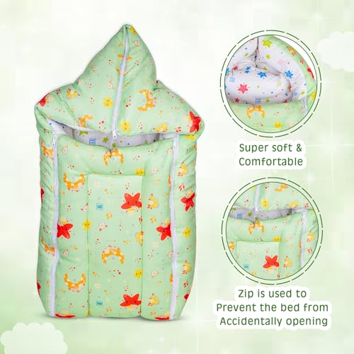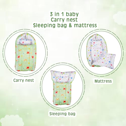 Mee Mee 3 in 1 Baby Bed, Sleeping Bag & Carry Nest, Starfish Print, Shearing Finish & Cotton Soft from Inside, Machine Washable & Portable Bassinet, Unisex Baby Sleeping Bed, 0M+, Green