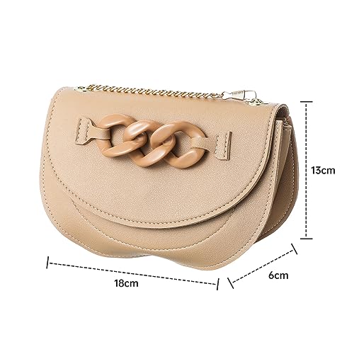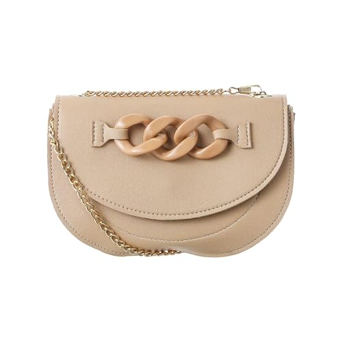 MINISO Sling Bag for Women Classic Half Moon Solid Color Flap Buckle Women Crossbody Bag with Chain Crossbody Purse Small Size