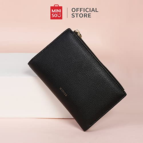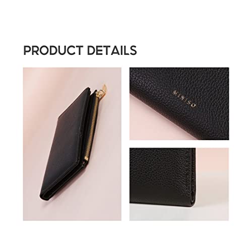 MINISO Wallet for Women Leather 2 Fold Purse with Card Slots 15x10x2cm (Black)