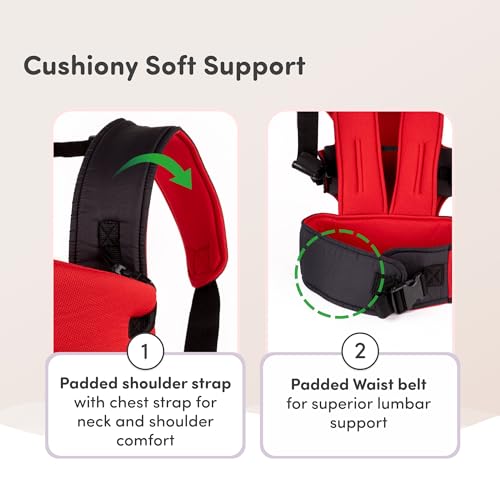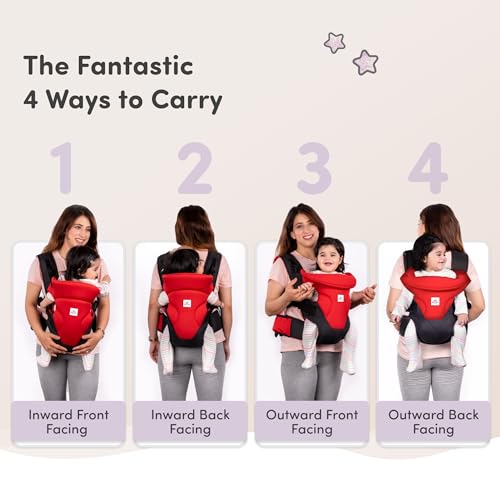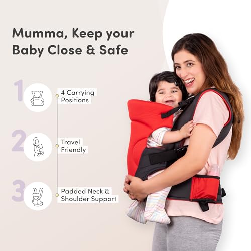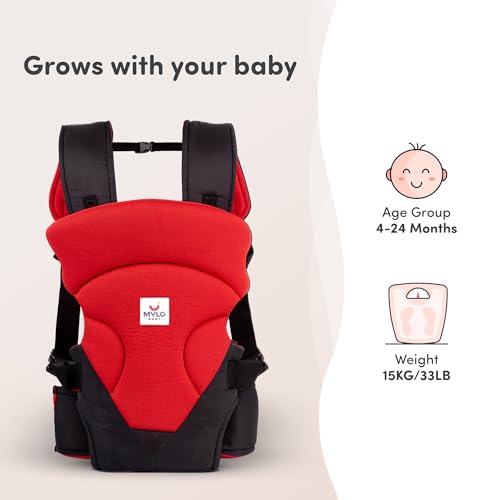 Mylo Baby Carrier Bag for 4 to 24 Months | Max Weight 15kg | with 4 Comfortable Carrying Positions | Lightweight & Travel Friendly (Red & Black)