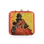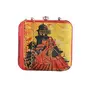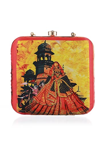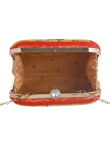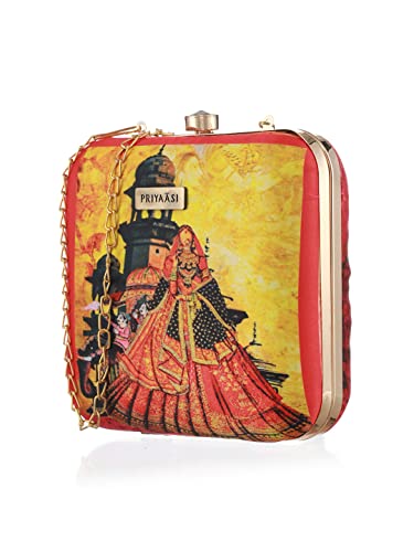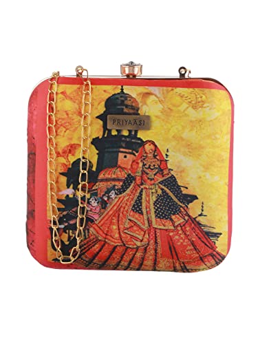 Be the star of the party by styling your outfit with this stunning clutch by Priyaasi. It is crafted in a square-shaped multicolor printed design enclosed with a click closure. It has a detachable chain strap.