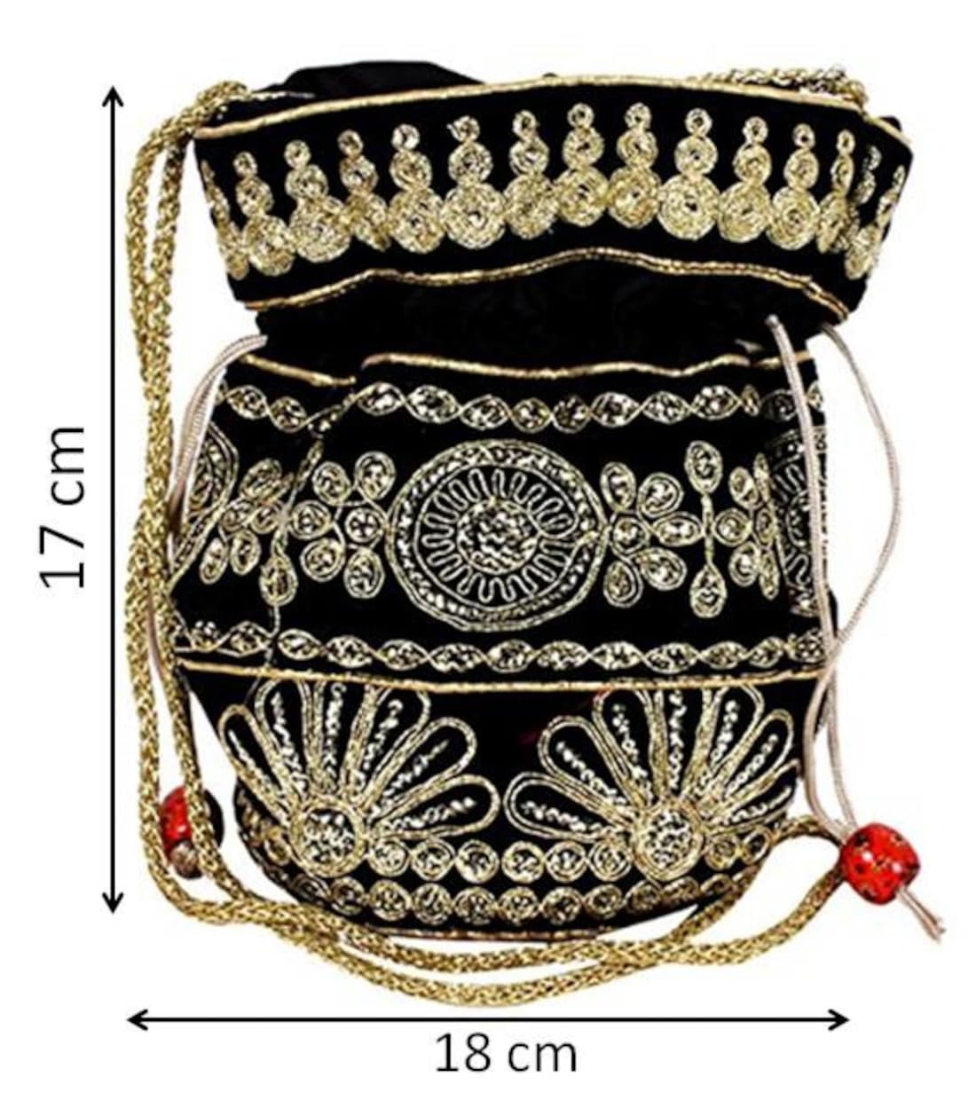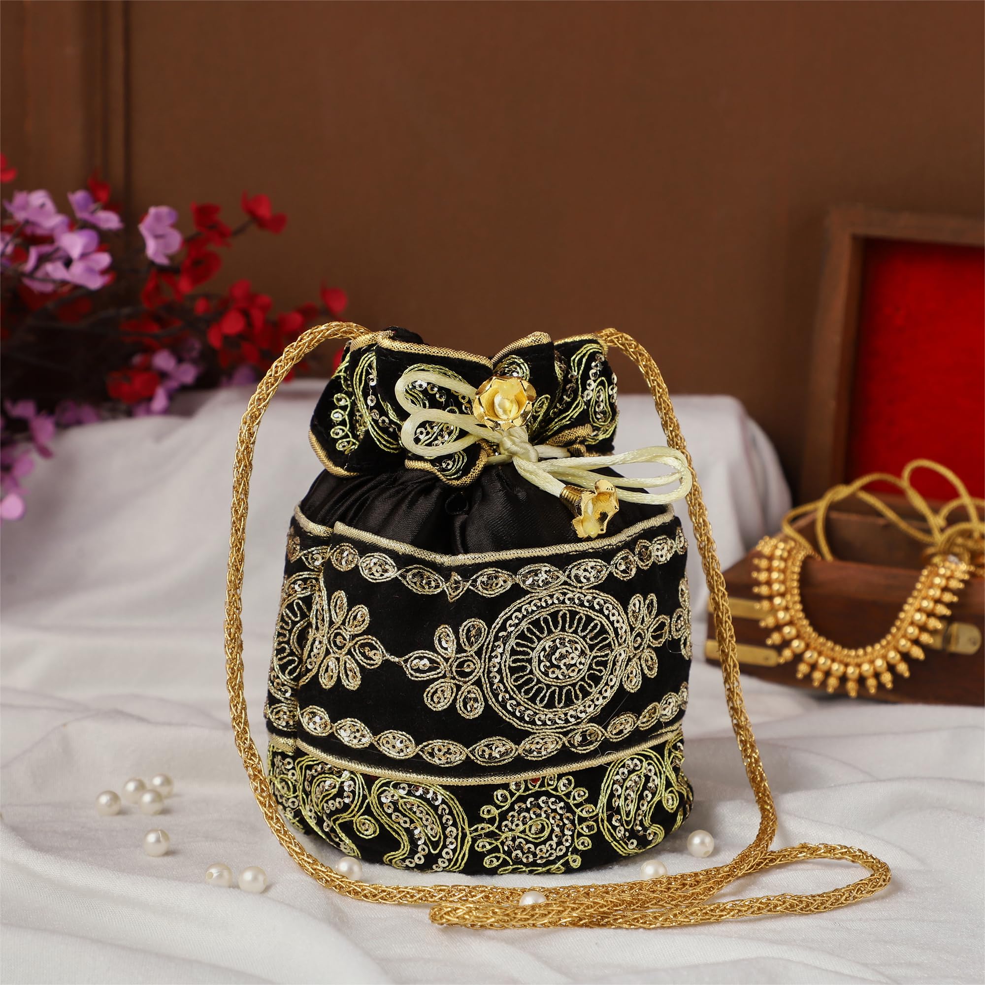 Purpledip Potli Bag (Clutch Drawstring Purse) For Women With Intricate Gold Thread & Sequin Embroidery Work