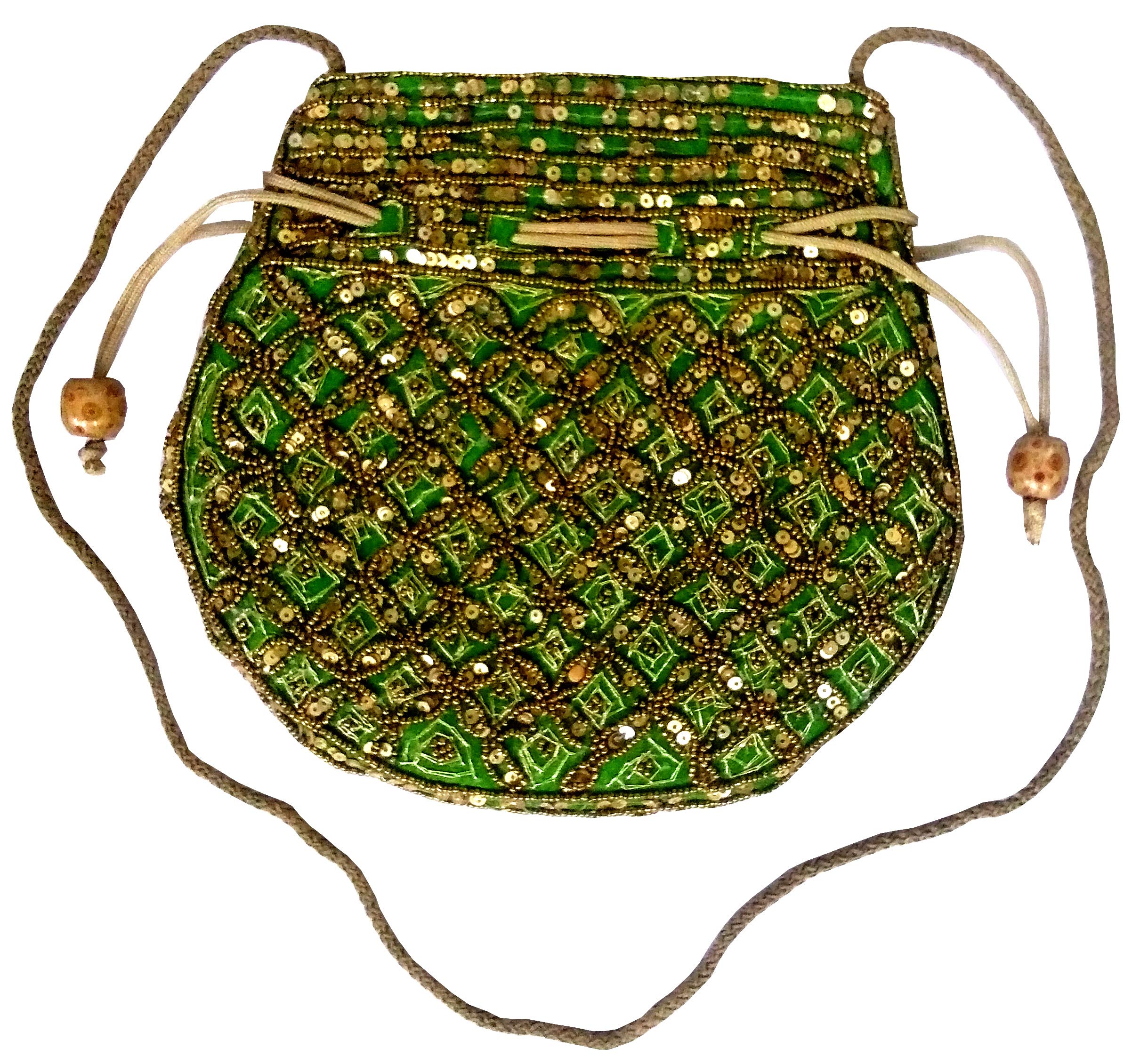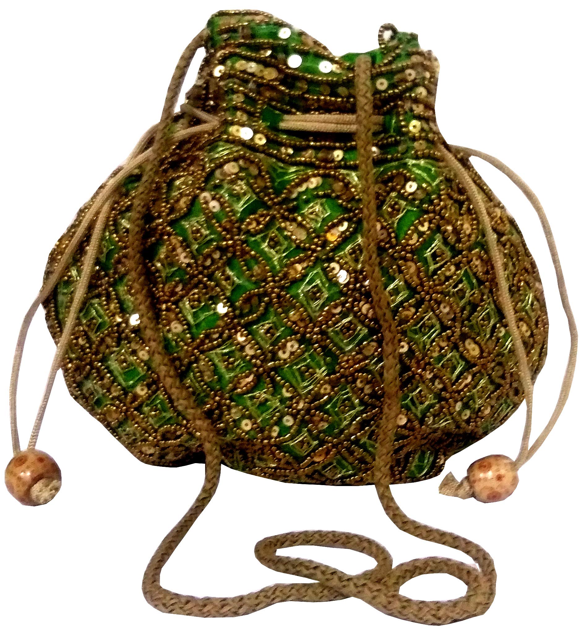 Purpledip Potli Bag (Clutch Drawstring Purse) For Women With Intricate Gold Thread & Sequin Embroidery Work