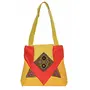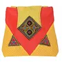 Raw Silk Big Flapper Bag with Kutchhi Patch work front face TOTE BAG EK-TOT-0004 Yellow-Red