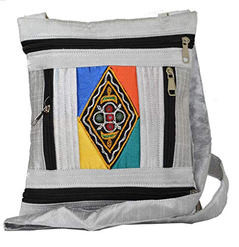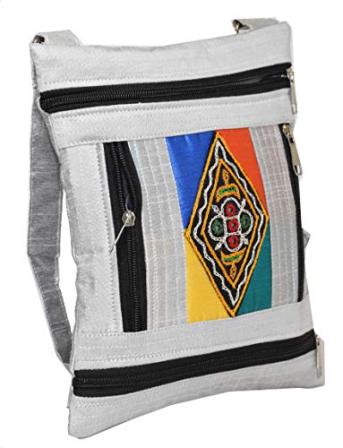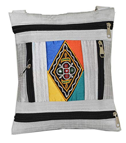Ethnics of Kutch Women's FOUR ZIP Sling Purse are attractive blend of Ethnic Traditional Handicraft and Modern Style with Contemporary look for young women and girls. Typical Ethnic Kutchhi Embroidary and Mirrorwork Face of the Sling Purse provides its Distinctive Traditional look to this attractively coloured Raw Silk Purses making it Fusion Product. Carry it on your shoulder wherever you go be it a party or gathering casual and routine use it will make you stand out from the rest with its unique looks and design