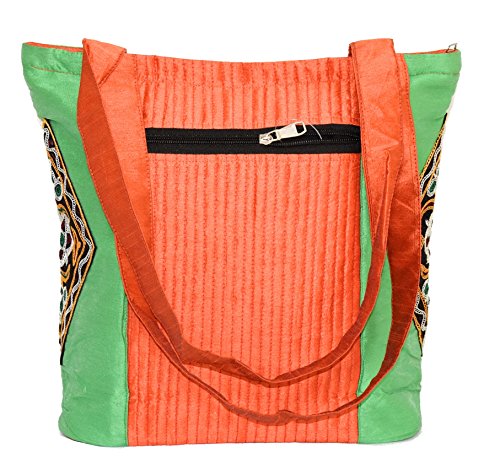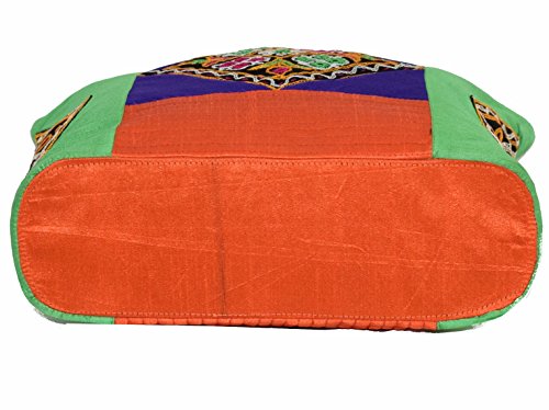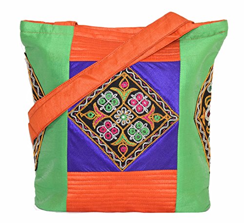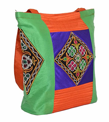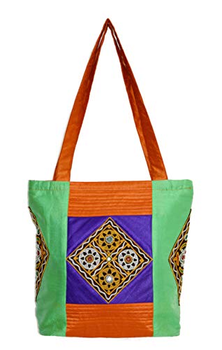 Ethnics of Kutch Women's Ethnic Kutch Handicraft Aahir Hand Embroidery Patch WorkShoulder/Shopping bags are attractive blend of Ethnic Style with Contemporary look for women of every age. This beautiful raw silk shoulder bag with beautiful colour combination is fusion of Ethnic Kutch Handicraft work and modern looking design. Carry it on your shoulder wherever you go be it a party or gathering casual and routine use its looks and shine will make you stand out from the rest with its unique looks and design