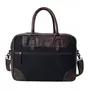 his is a handmadeblack coloured Portfolio / Office Bag / Laptop Bag / Travel Bag made from 100% genuine full grain leather & canvas. Features of the bag: It closes fully with a zipper on top. Inside the bag there is a padded laptop compartment that is fastened with a small velcro flap & fits a 15 inch laptop or ipad apart from the main large compartment that can carry all your office essentials like files folders documents etc. It is also suitable for a weekend getaway as it can accommodate a set of clothes. Also there are two open pockets inside for cellphone and small stuff and a zipper compartment at the back. The bag can be carried in hand or over your shoulder using the comfortable adjustable detachable shoulder strap. Dimensions of the bag: Length: 15.35 inches Height: 11.2 inches Width (at base): 4.3 inches