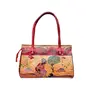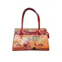 Handcrafted from Genuine Leather a Beautiful Ethnic Art of West Bengal. Design on Both Sides Double Shoulder Tote Handle One Main Zipper compartment One Zipper pocket in Back and Three Compartments inside Two zipper and One open cell phone compartment. Closes fully with zip. This purse is a classic example of age old Shantiniketan craft which was introduced in West Bengal India during the 1940s. The Shantiniketan style evolved as a result of the Art Movement and these products have now become world famous for their applique batik and embossed craft work. The process of burnishing the leather gives it an elegant sheen and brings out the colors. The major embossing craft is done by hand and is an intricate process. After the final leather made it is then stitched into the desired product coated with a lacquer finish for making the product shiny and long lasting. We are happy for your interest SHANTINIKETAN EMBOSSED LEATHER PRODUCTS and artist of Shantinikan thanks to you.