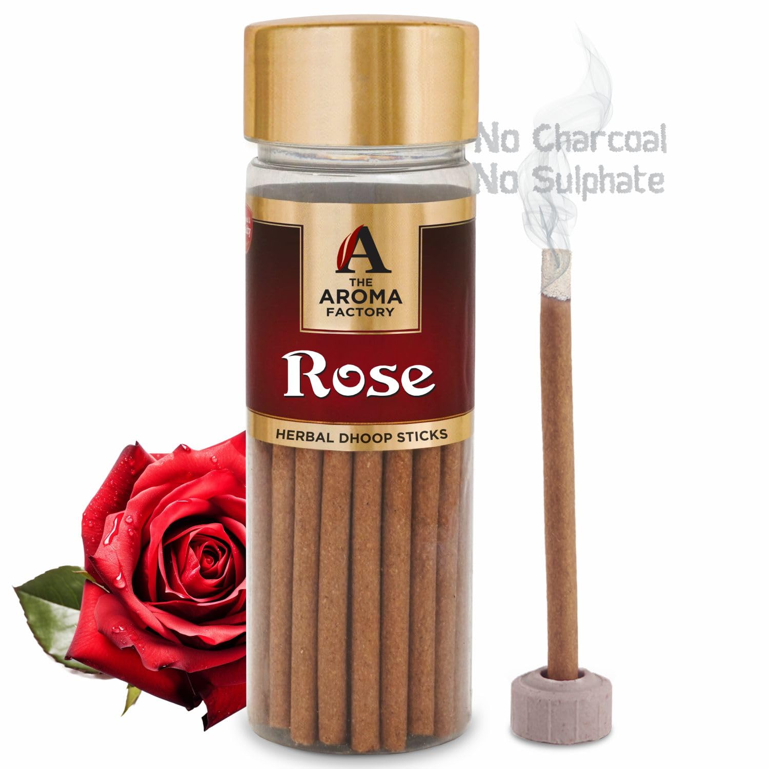 HomeFashionBagsThe Aroma Factory Dhoop batti (RoseLavenderJasmine&ChocolateLemongrassmogra) No Bamboo Herbal Dhoop Sticks with Incense Holder 5 Bottle x 100gwith Jute Bag