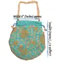 Touchstone NEW Indian Hand Embroidered Floral Shopping Gifts Jewelry Wedding Sweet Distribution Faux Pearls Strings Drawstring Fancy Teal Green Color Bag Purse Pouch For Women.